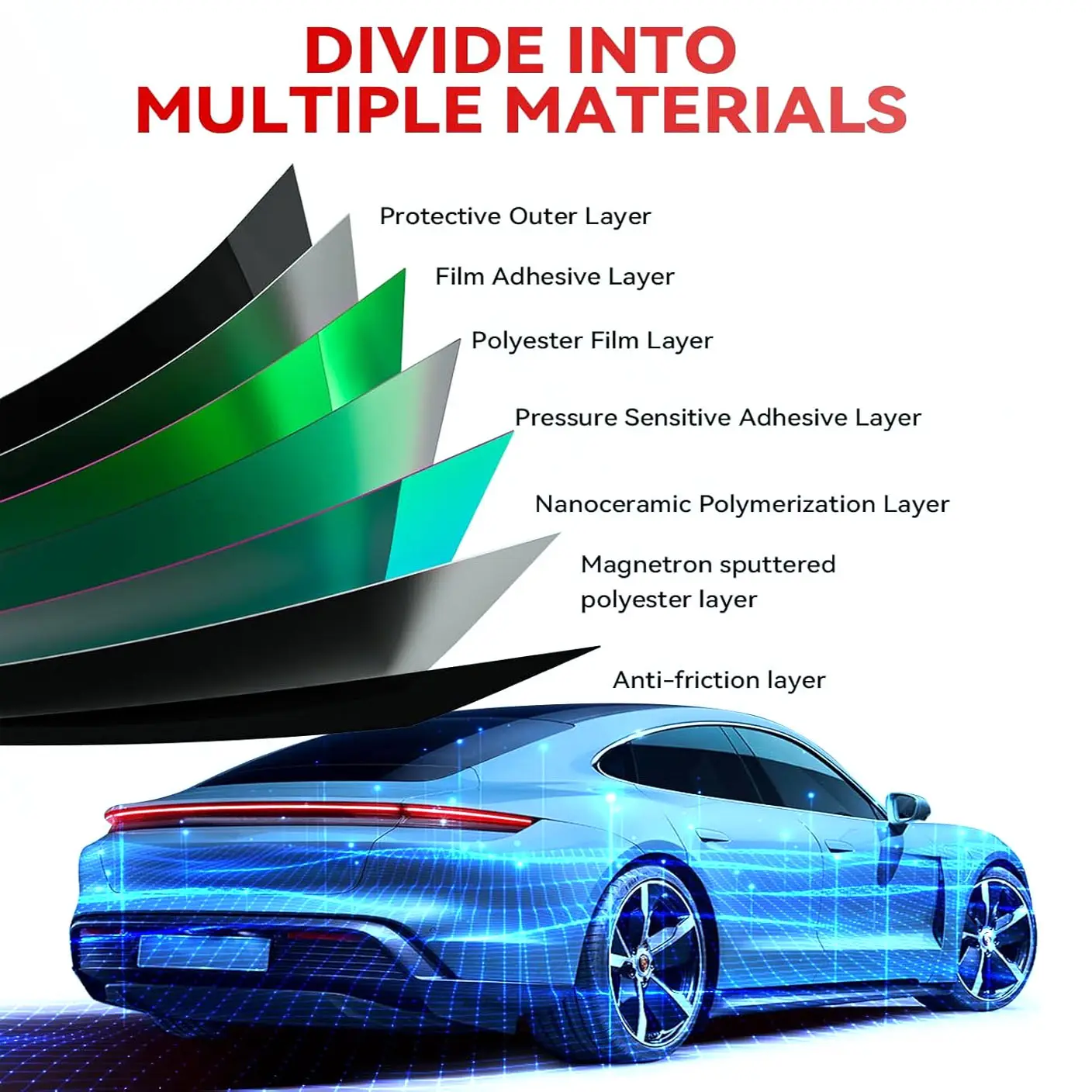 Upgrade your drive with فیلمی ڕەنگی پەنجەرەی ڕەنگ, the perfect combination of heat rejection, پاراستن لە تیشکی سەروو بنەوشەیی, and elegant design. Made from premium PET automotive film, it blocks up to 99% تیشکی زیانبەخش لە تیشکی سەروو بنەوشەیی and reduces up to 36% of total solar heat, keeping your car interior cool and comfortable in any season.